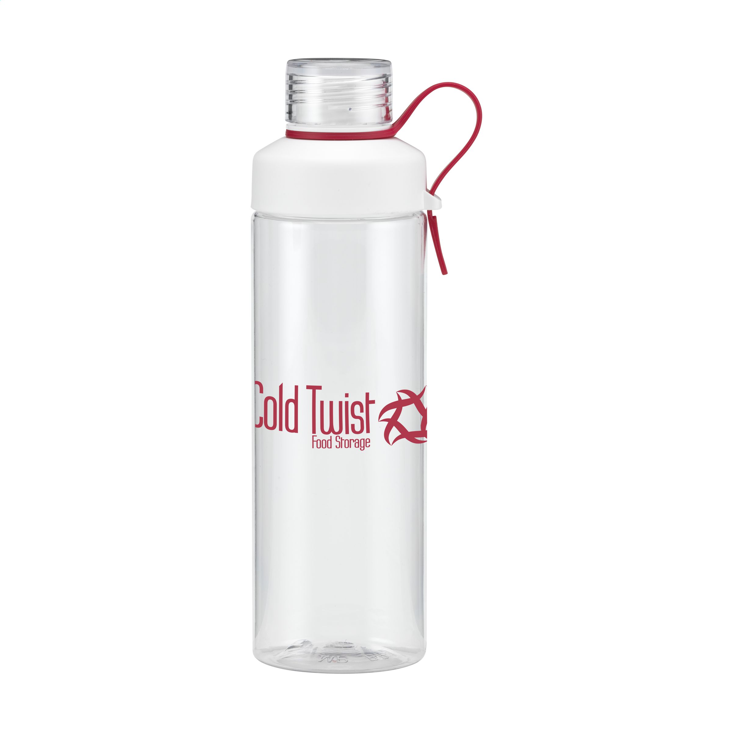 Trendy waterfles van helder Tritan kunststof: milieuvriendelijk, BPA-vrij en duurzaam. Met royale opening met schroefdeksel, kleine afsluitbare drinkopening en draaglus. Ook te gebruiken als drinkbekertje. Inhoud 750 ml.