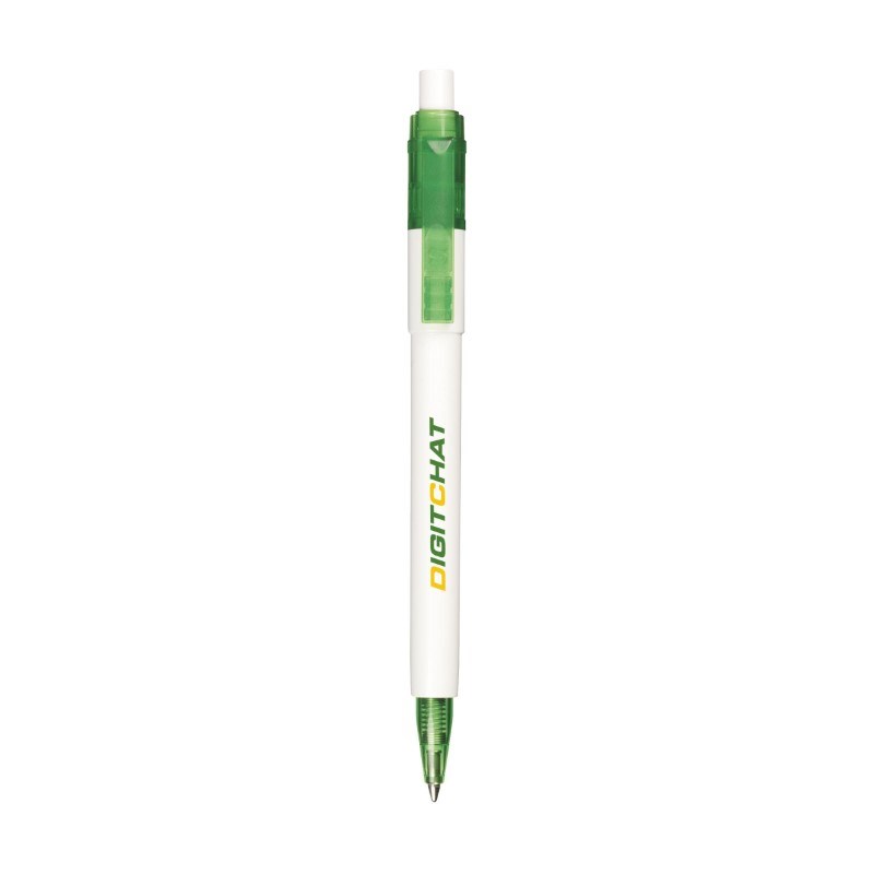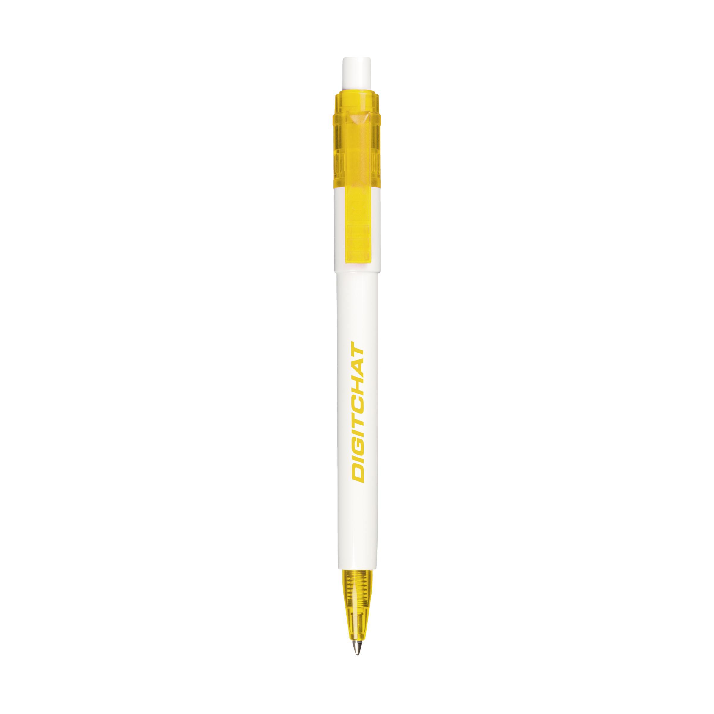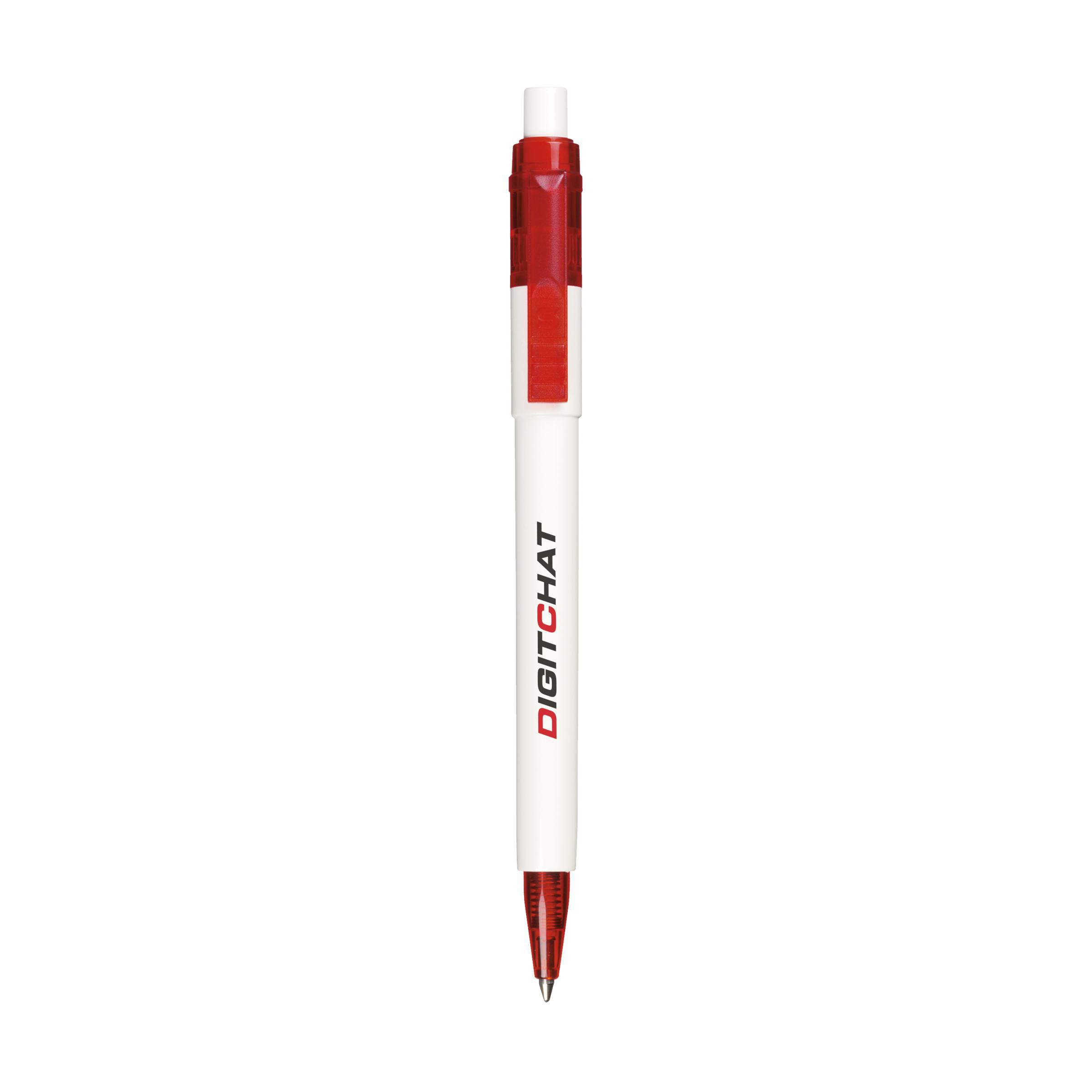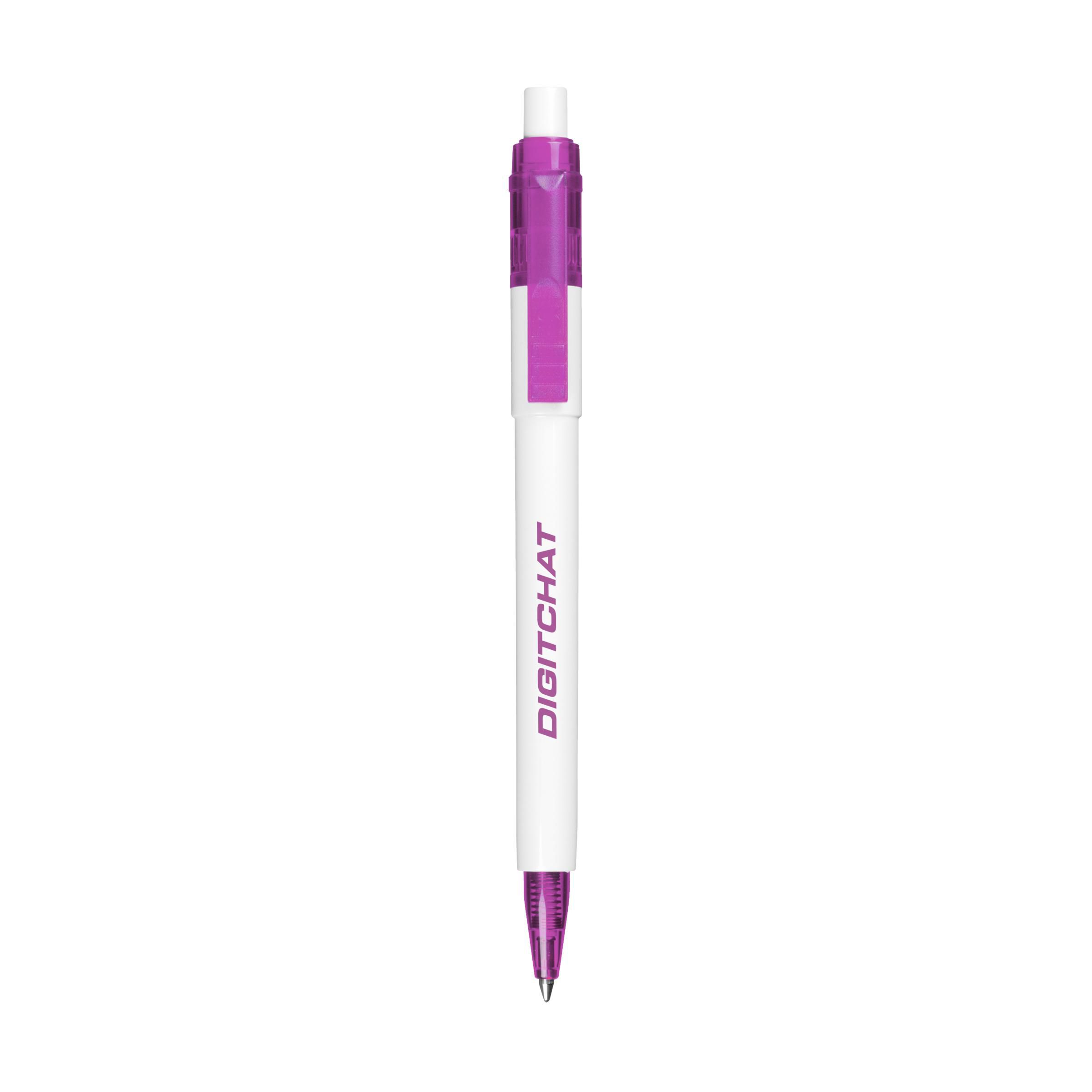 Blauwschrijvende balpen met transparantgekleurde clip en puntstuk. Made in Italy.