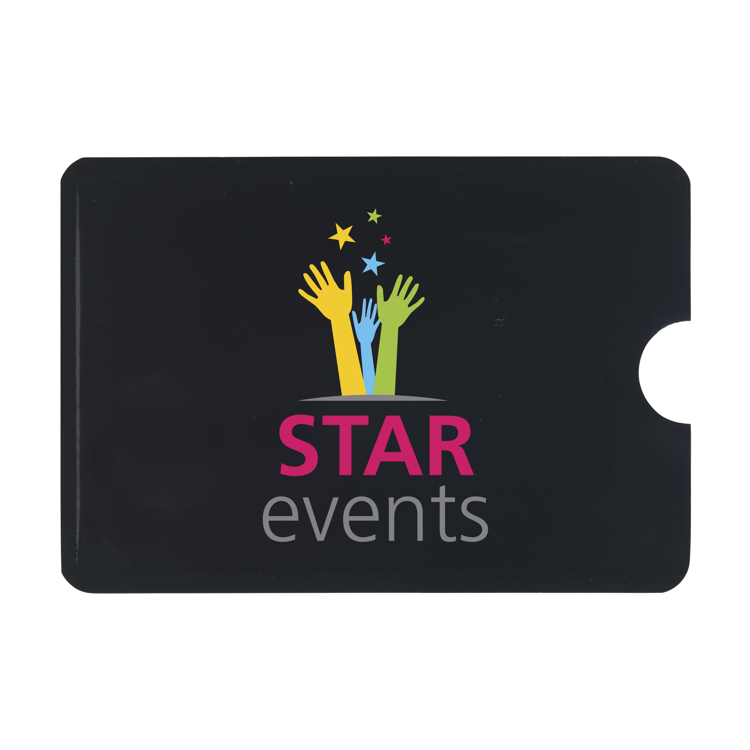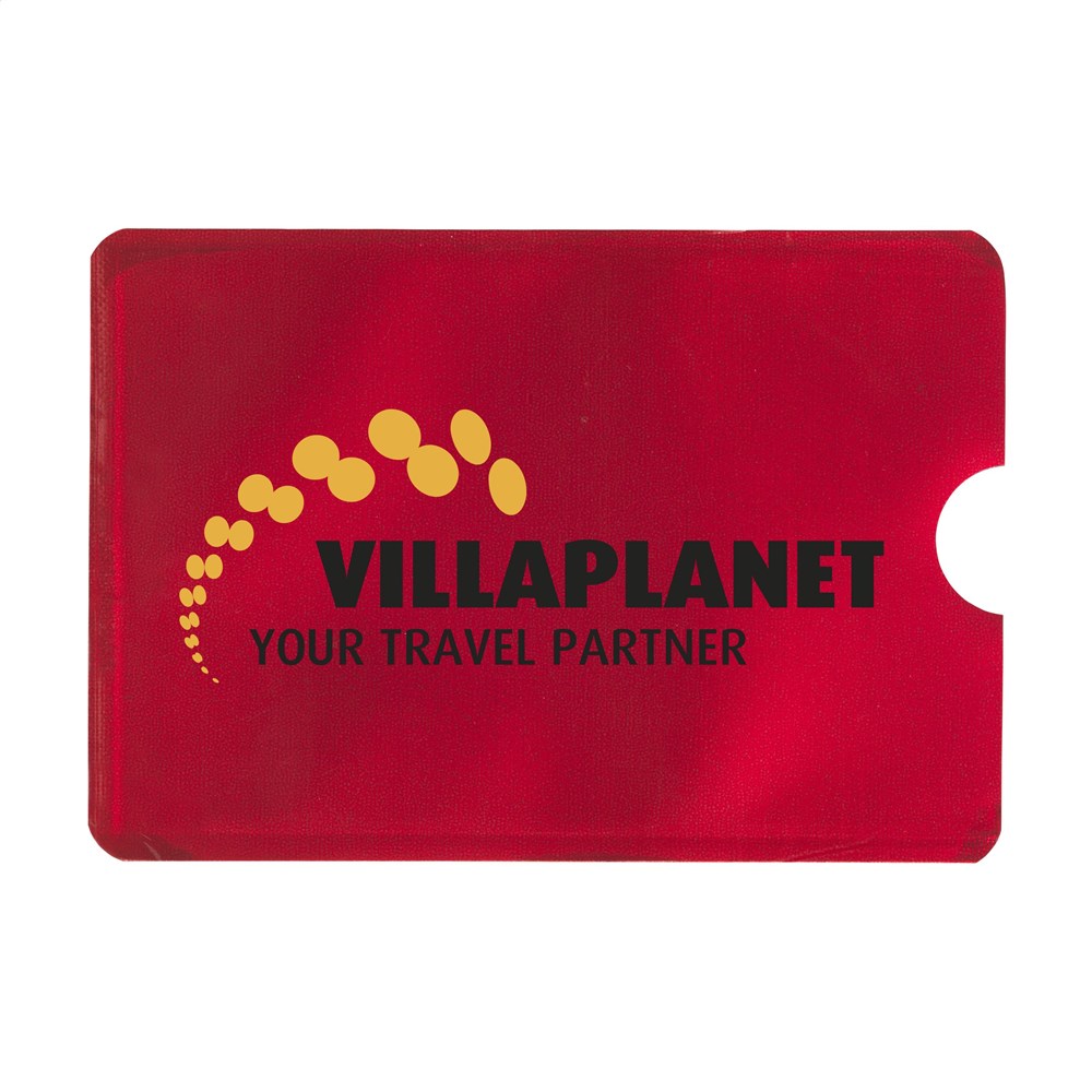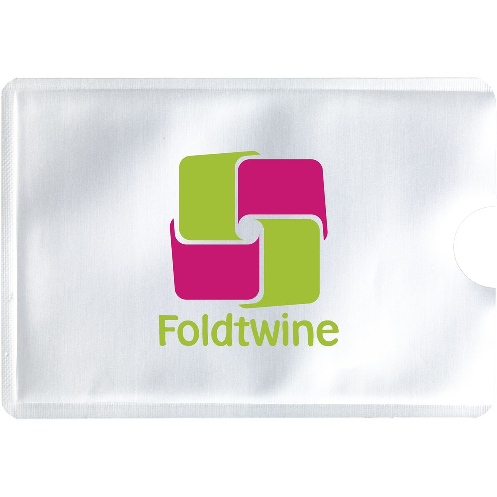Flexible RFID kaarthouder van aluminium/PP om skimmen en digitaal uitlezen van passen te voorkomen. Eenvoudig te bewaren in een portemonnee of op de achterzijde van een mobiele telefoon door de handige plakstrip. Geschikt voor 1 pas. Opdruk in de kleur wit is niet mogelijk.