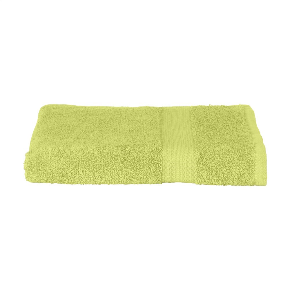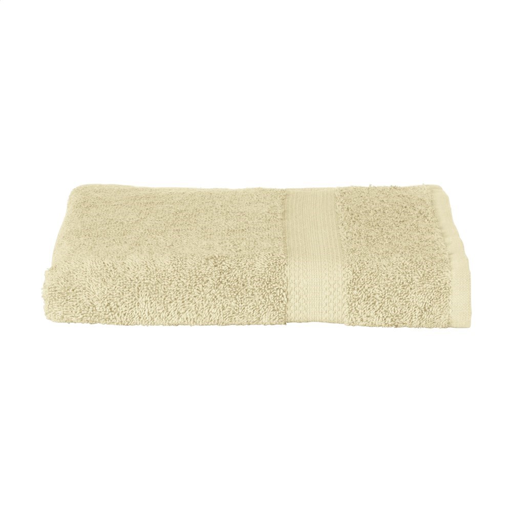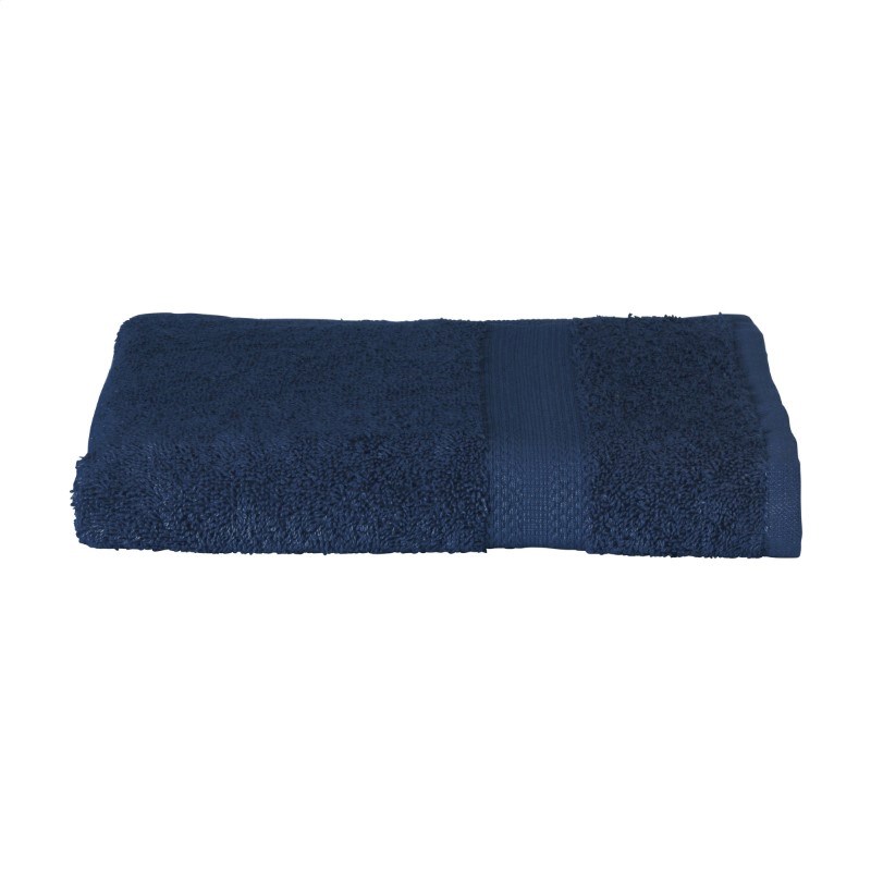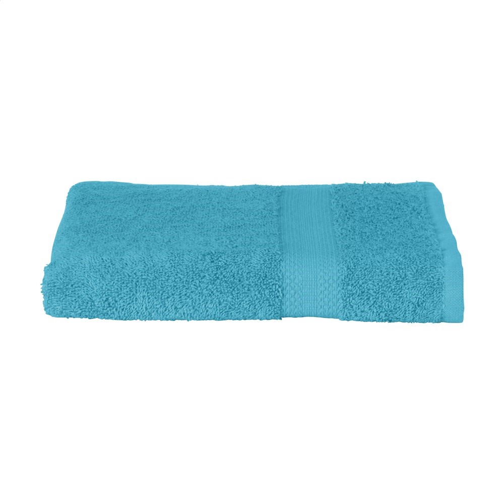Handdoek van het merk Solaine. Zware kwaliteit badstof van 100% katoen (450 g/m²), zacht en comfortabel. Met mooi ingeweven band met fraai motief. Ter info: De mogelijkheden m.b.t. het borduren van kleine details in een logo (zoals bijvoorbeeld hele kleine letters) zijn bij borduren beperkter dan bij bedrukken. Het kan daarom voorkomen dat we je, na ontvangst van je logo, adviseren het logo te aan te passen of te vergroten.