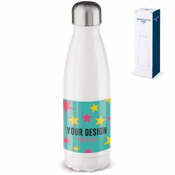 Lekvrije en roestvrijstalen drinkfles die isolatie biedt voor koude en warme dranken. De fles is vacuüm geisoleerd en dubbelwandig. De coating van de fles geeft een mogelijkheid om sublimatiedruk op het product toe te passen. Per stuk in geschenkverpakking verpakt.
