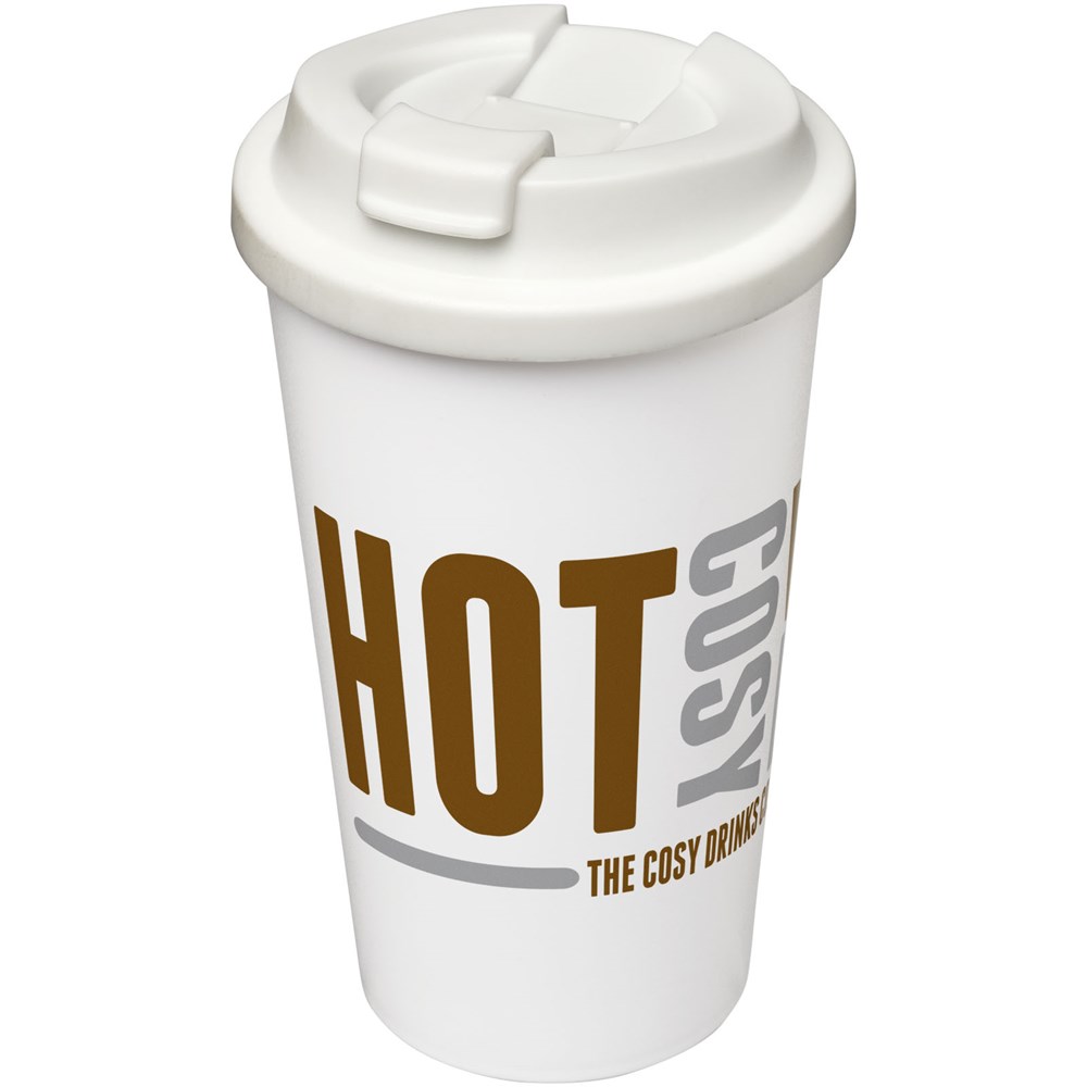 Dubbelwandig geïsoleerde beker met draaideksel. Met een drukklepje aan de bovenkant waardoor morsen wordt voorkomen terwijl je onderweg bent. Volumecapaciteit is 350 ml. Mix en match kleuren om je perfecte mok te creëren. Neem contact op met de klantenservice voor meer kleuropties. Gemaakt in het Verenigd Koninkrijk. Verpakt in een thuis-composteerbare polybag.