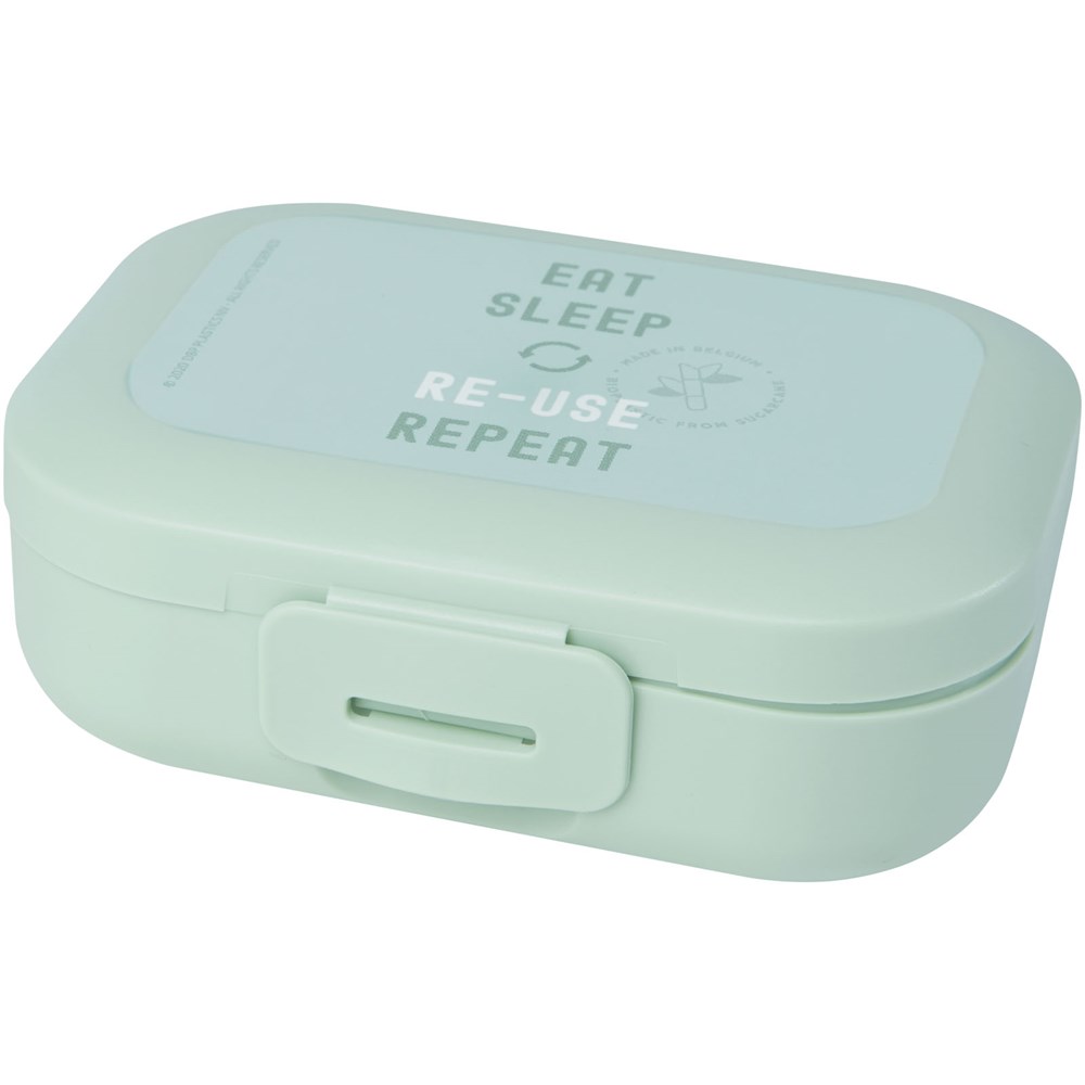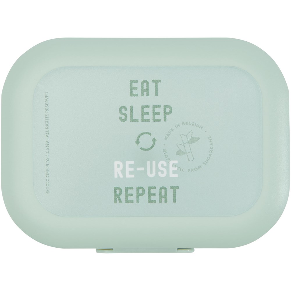 De Bio clip snackbox van 250 ml van Amuse Plus is ideaal om wat snacks mee te nemen. Hij is gemaakt van 37% suikerriet, een duurzame en hernieuwbare grondstof. Een perfect eco-vriendelijk alternatief voor traditionele plastic snackboxen. Aan de zijkant zit een stevige clip die de snackbox onderweg goed gesloten houdt. Vaatwasserbestendig. BPA-vrij.