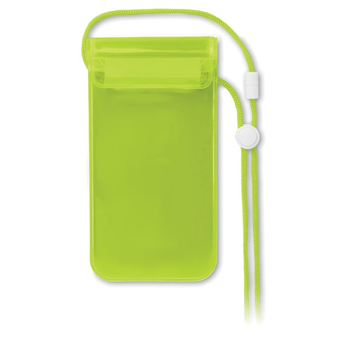 Waterdichte smartphonehoes gemaakt van PVC, inclusief polyester koord. Met veiligheidsgesp en stopper. Het hoesje heeft een dun oppervlak dat de werking van het touchscreen van buitenaf mogelijk maakt.
