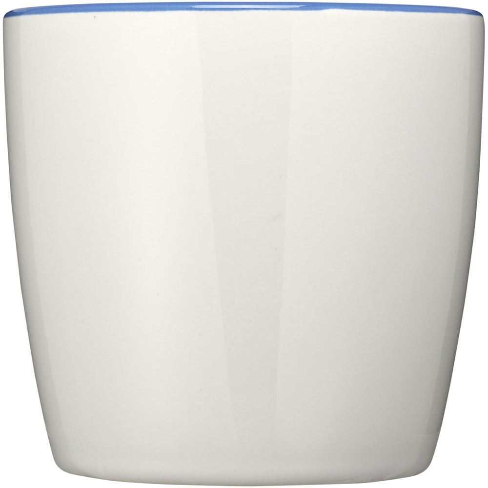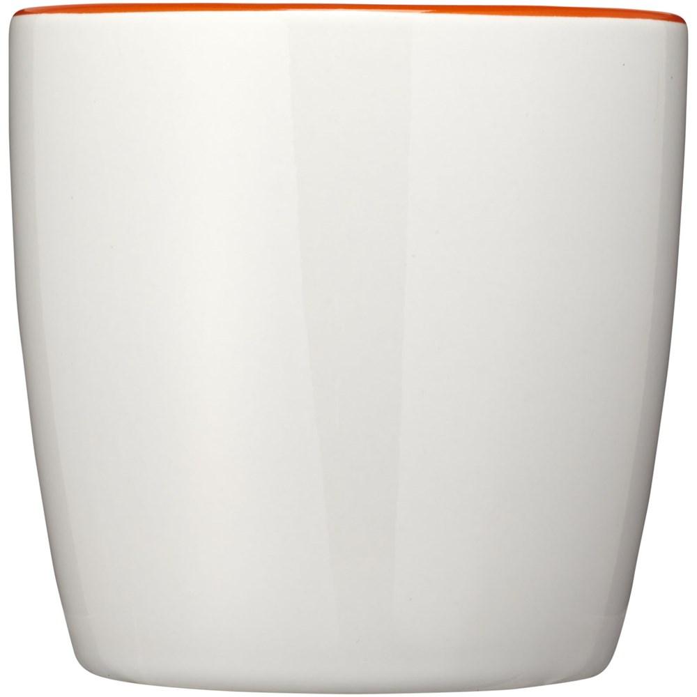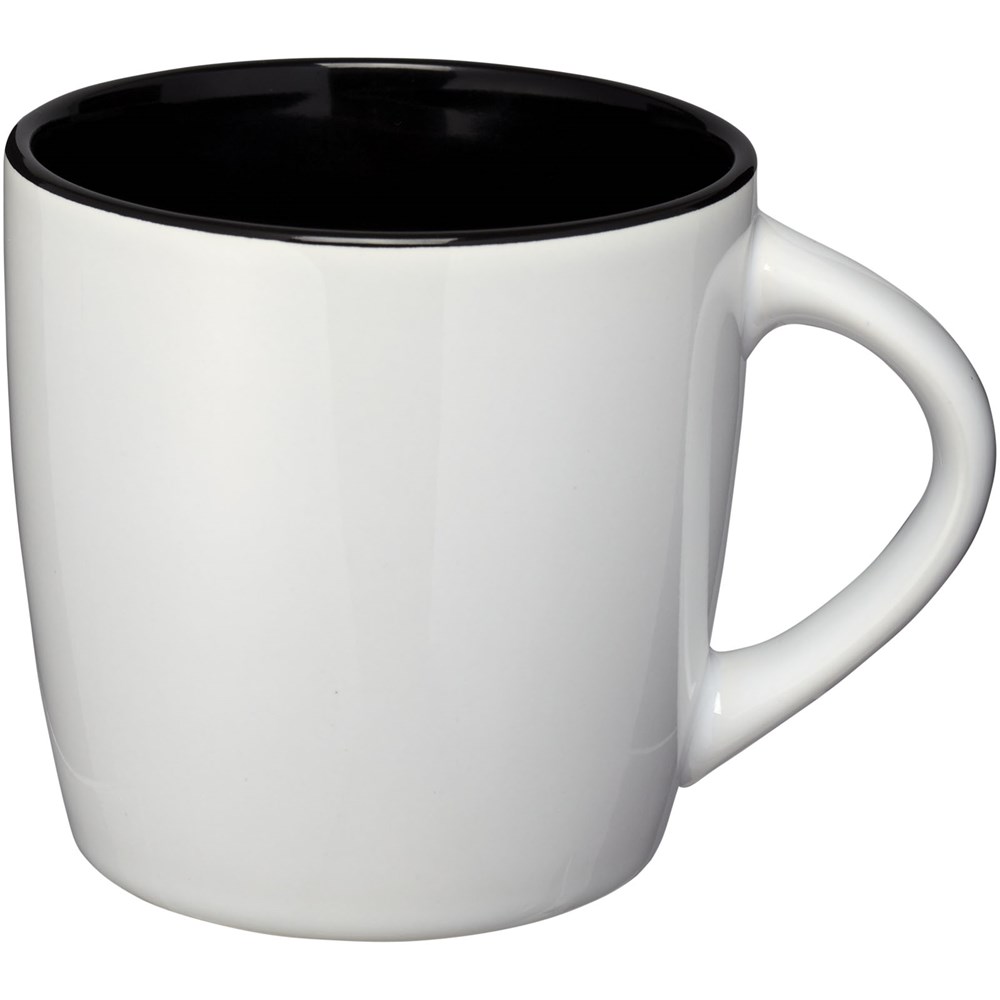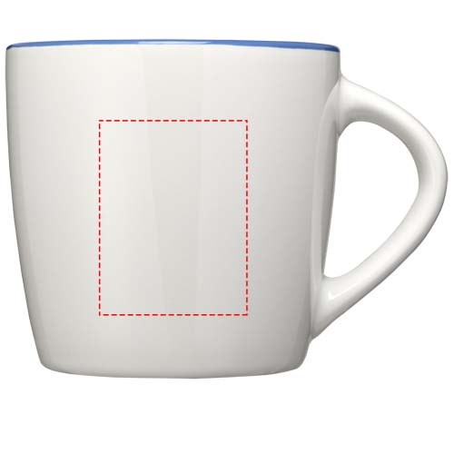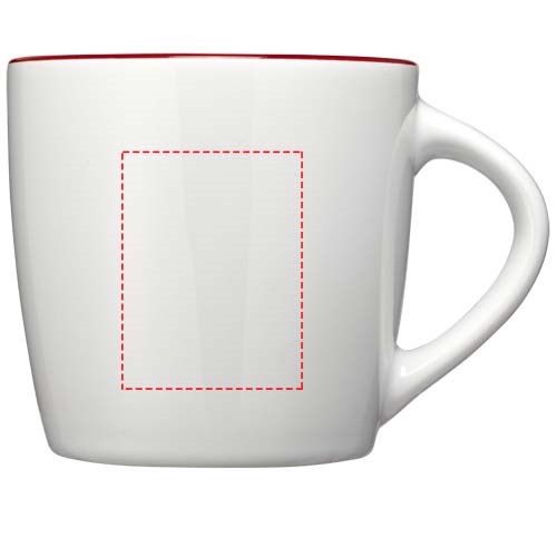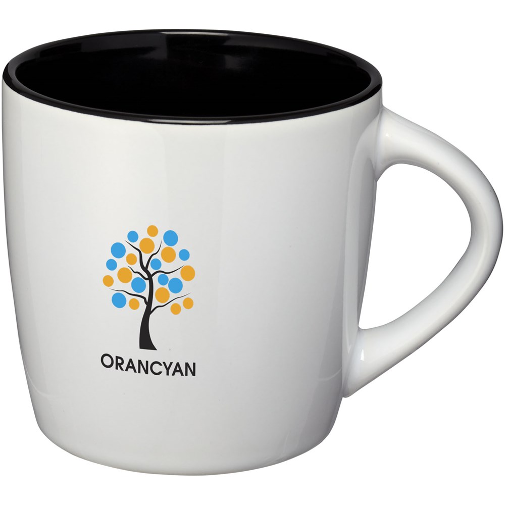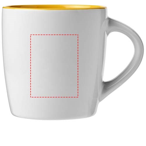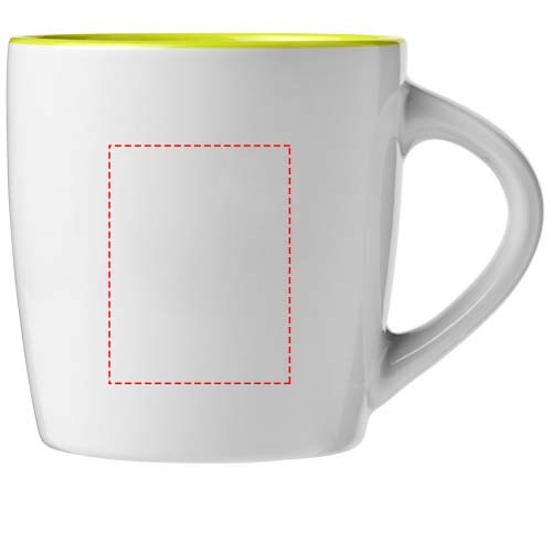 Keramieke mok met een inhoud van 340 ml met glanzende buitenkant en binnenkant met kleur accent. EN12875-1 compliant, Vaatwasmachine bestendigd. Geleverd in een witte geschenkverpakking.