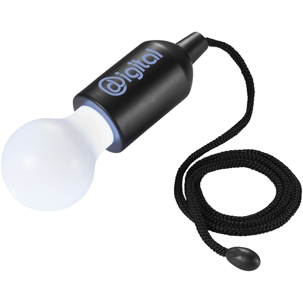 Peervormige witte LED lamp met een aan-/uit trekschakelaar. Licht waar en wanneer je maar wilt – in de garage, in de tent, in een kast, in het huis en buitenshuis. Incl. 3 AAA-batterijen.