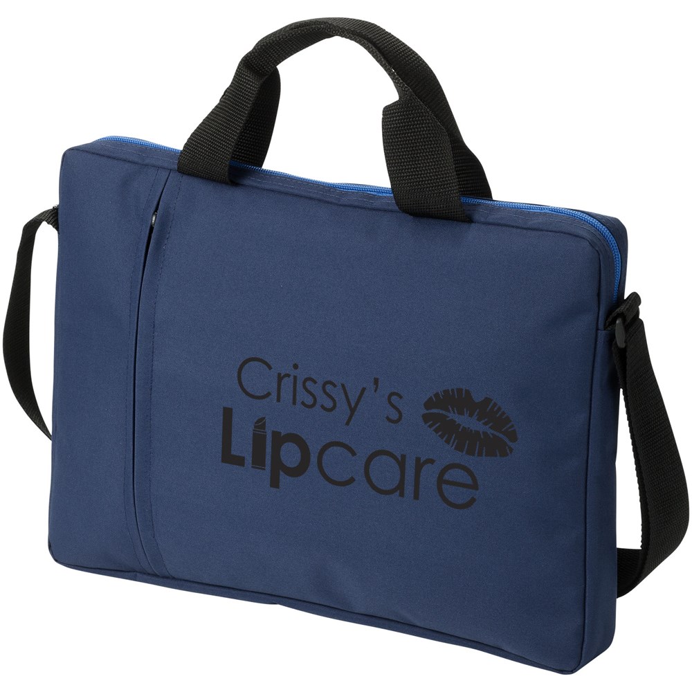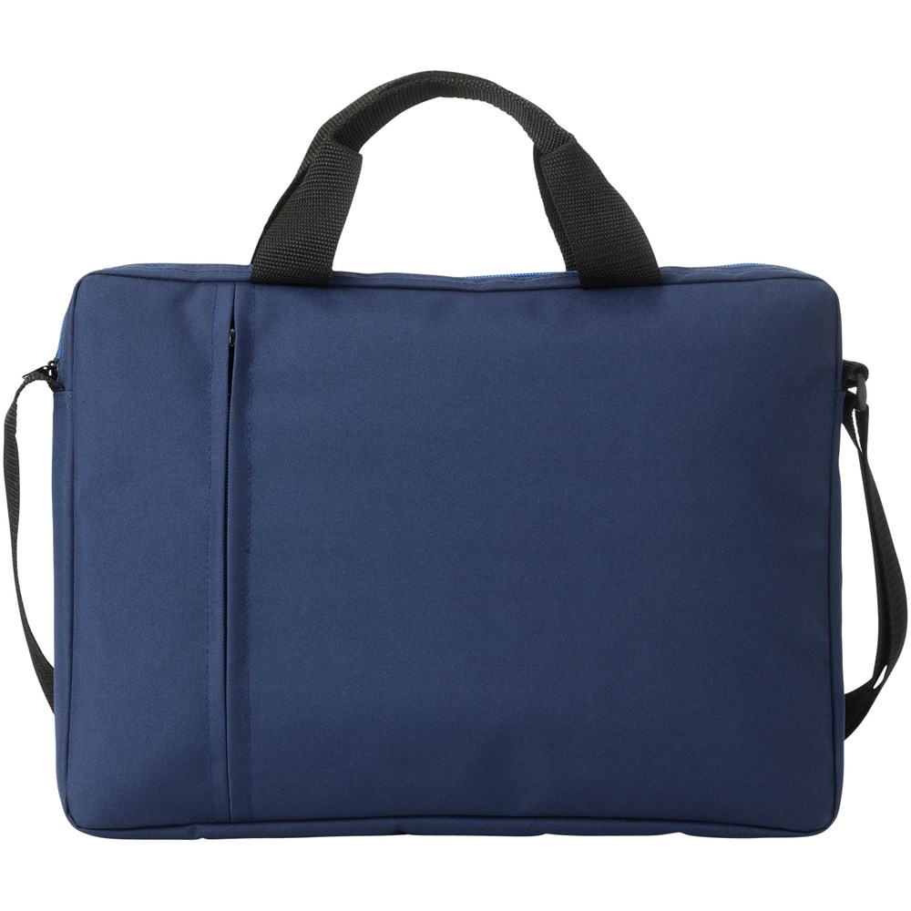Laptop tas met dubbele handgreep, voorvak met rits en verstelbare schouderband. Geschikt voor 14" laptops.