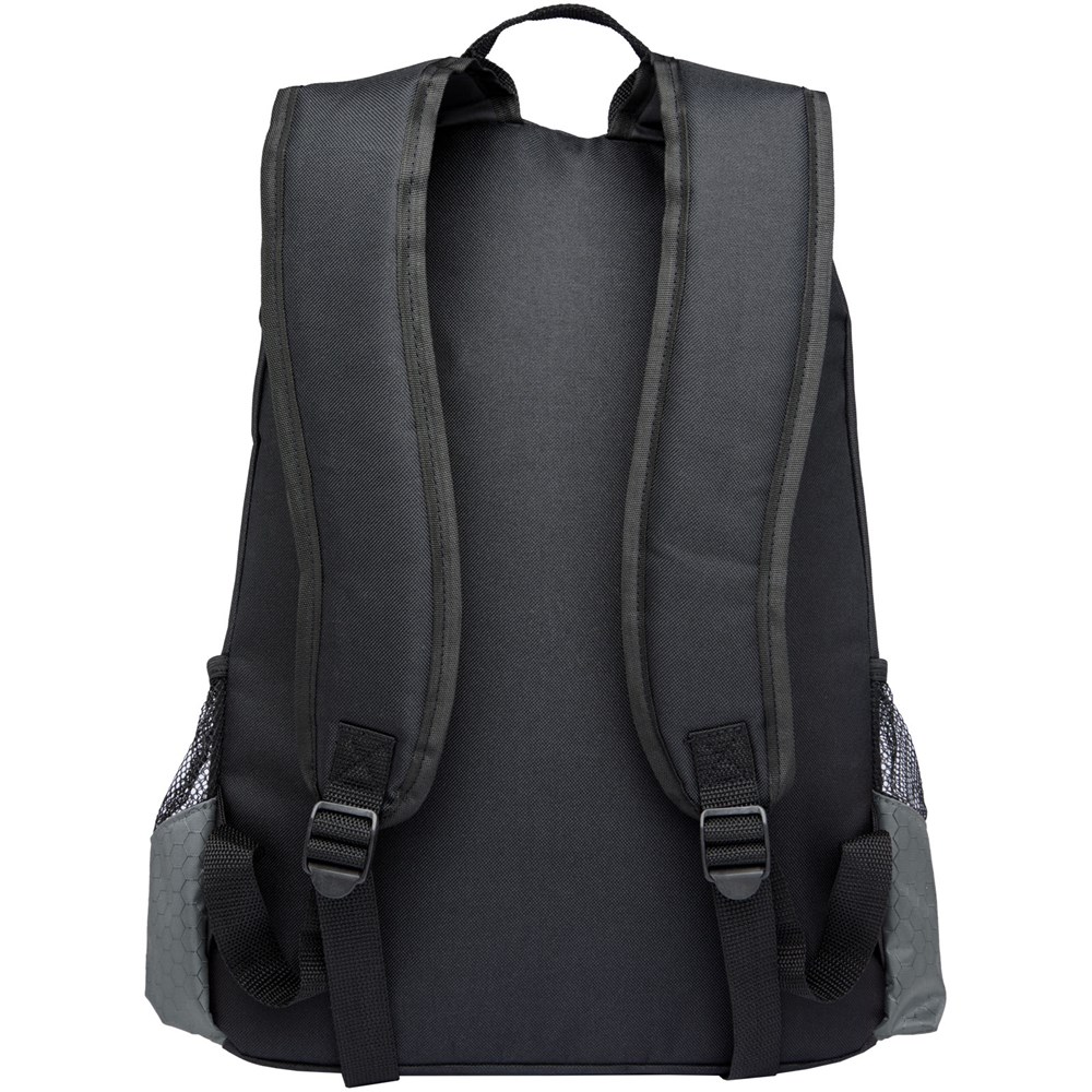 Rugzak met hoofdvak met ritssluiting, geschikt voor de meeste 15" laptops en met gevoerd vak voor iPad of andere tablet. Groot ritsvak aan de voorkant met organizer en oortelefoondoorgang. Twee zijvakken, Verstevigde greep en verstelbare, gevoerde schouderbanden. Accessoires niet inbegrepen.