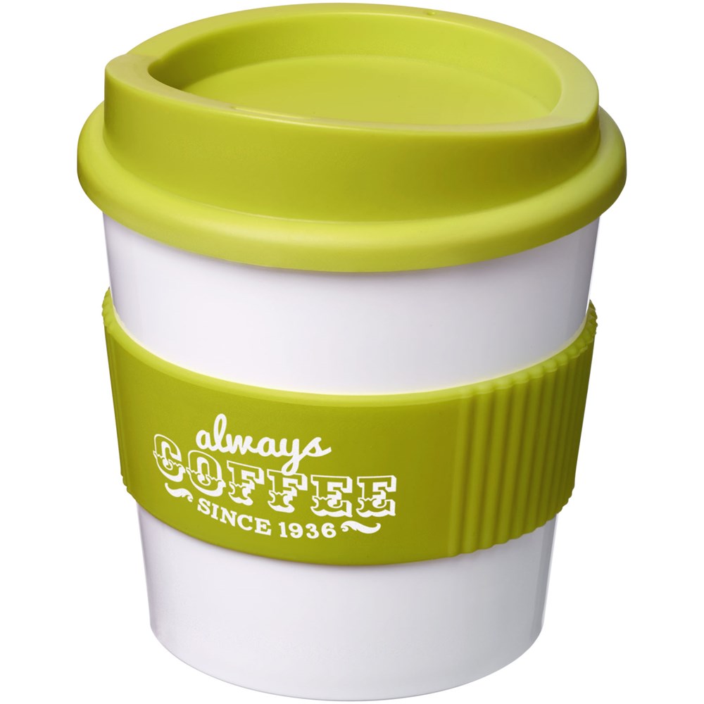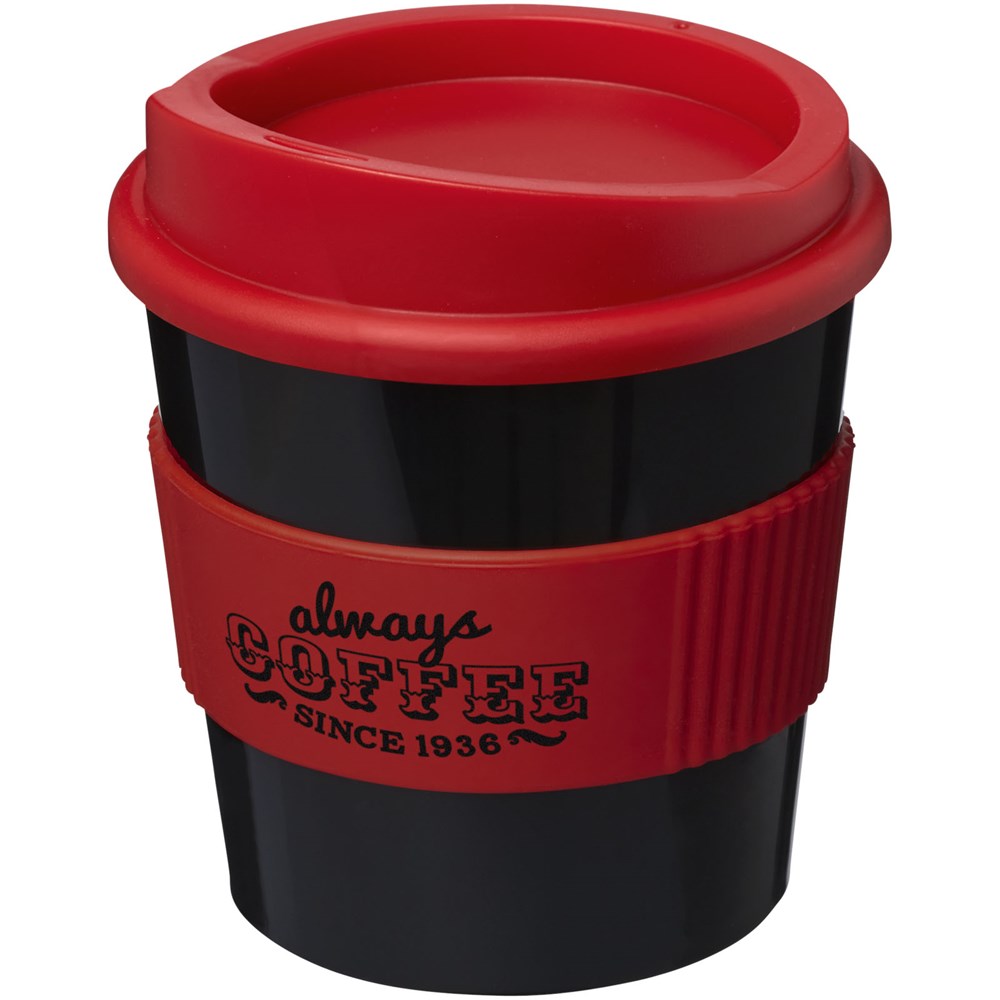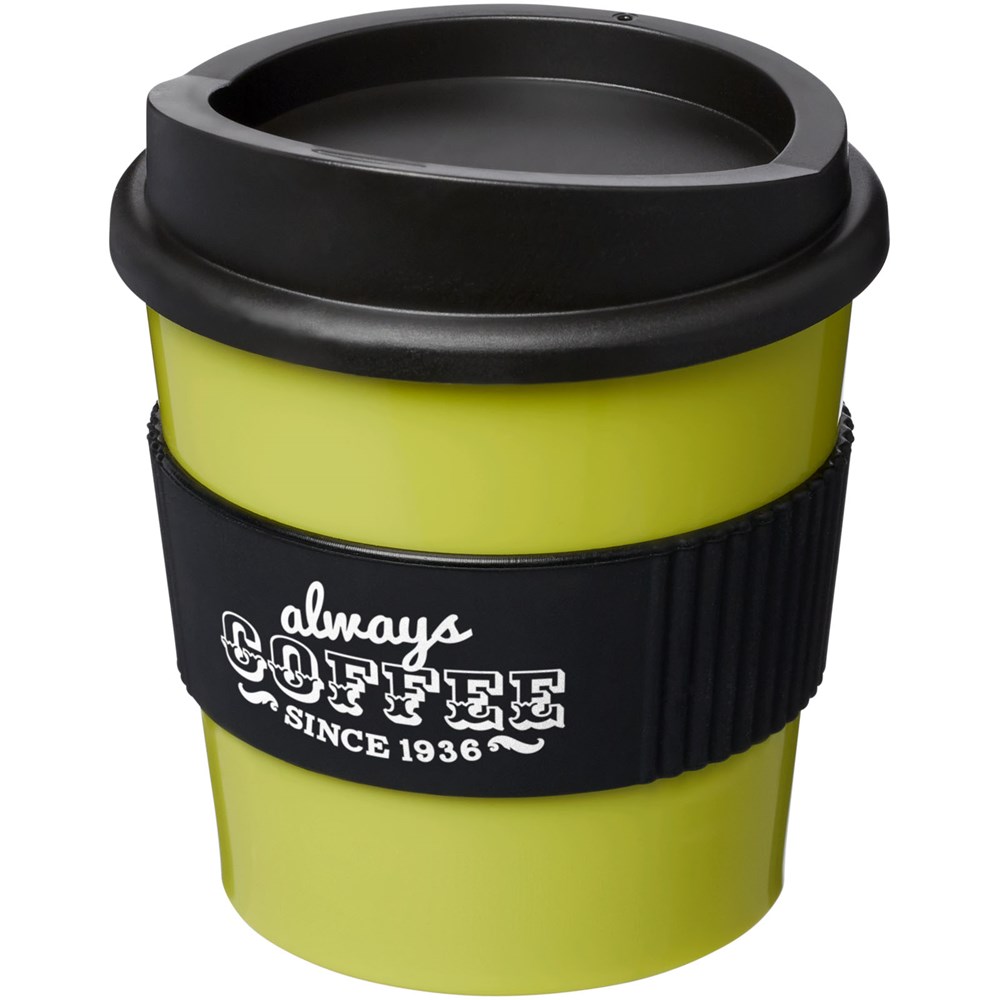 Enkelwandige beker beker met drukdeksel en siliconen grip. Past onder de meeste koffiezetapparaten. Volume 250 ml. Mix en match kleuren om je perfecte mok te creëren. Neem contact op met de klantenservice voor meer kleuropties. Gemaakt in het Verenigd Koninkrijk. Verpakt in een thuis-composteerbare polybag.