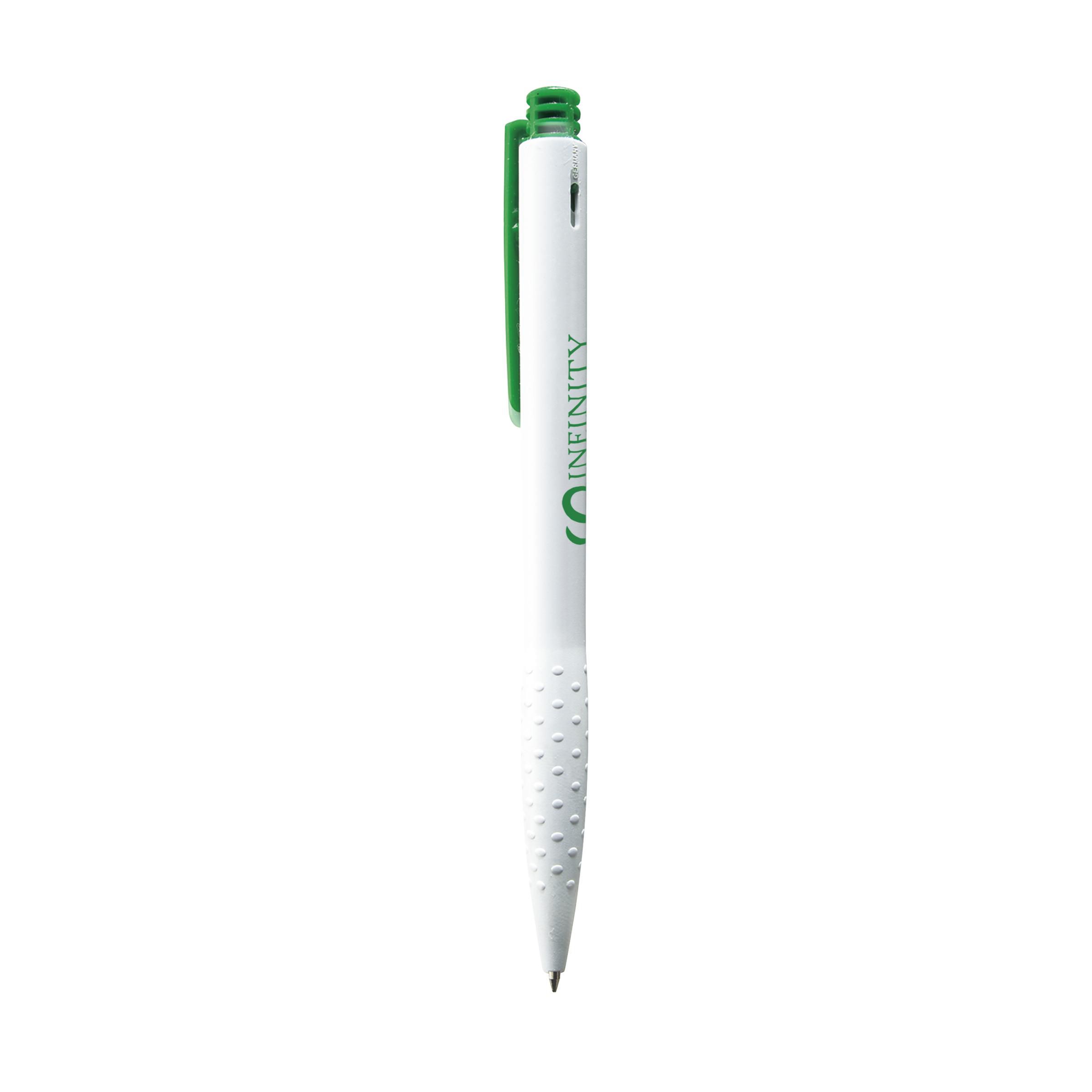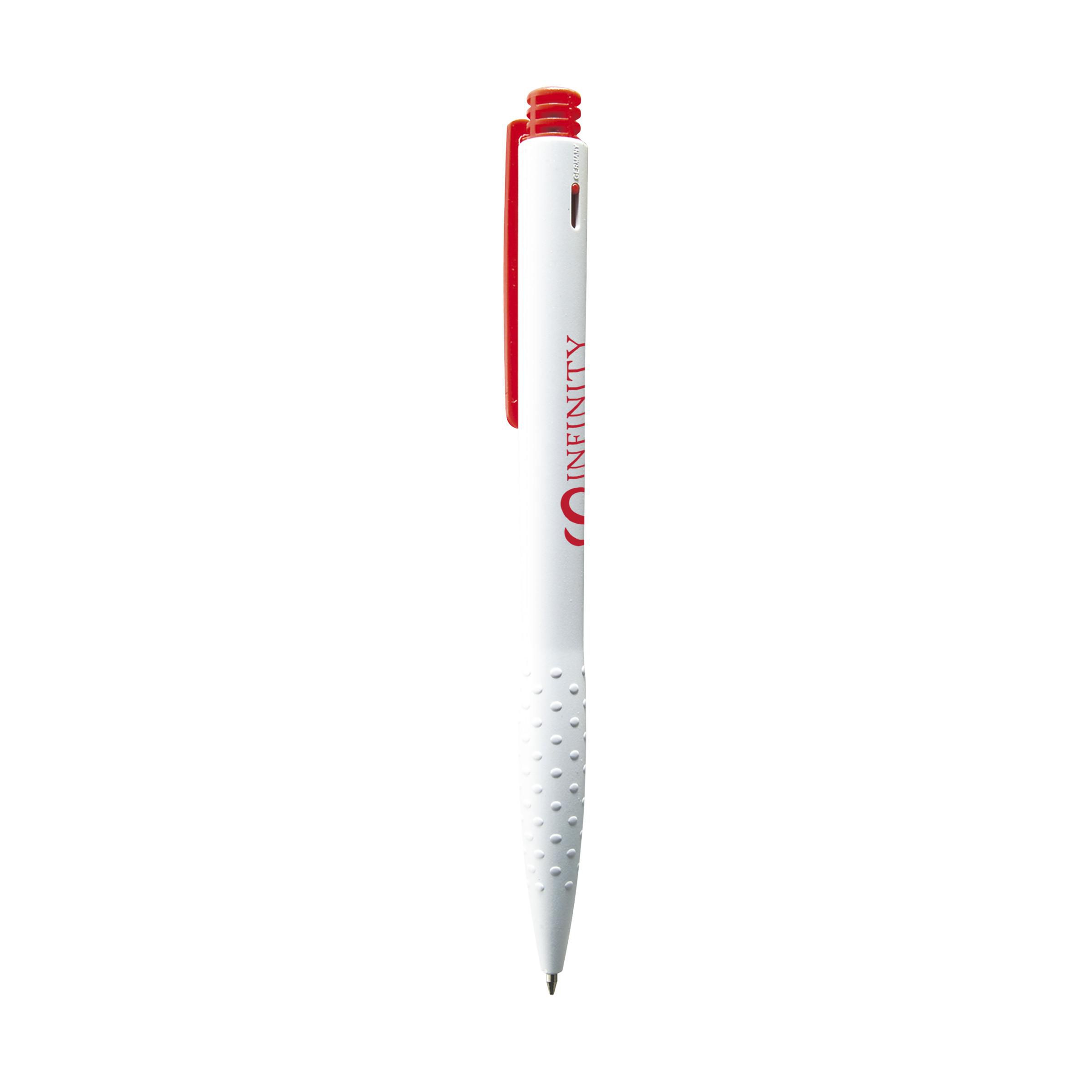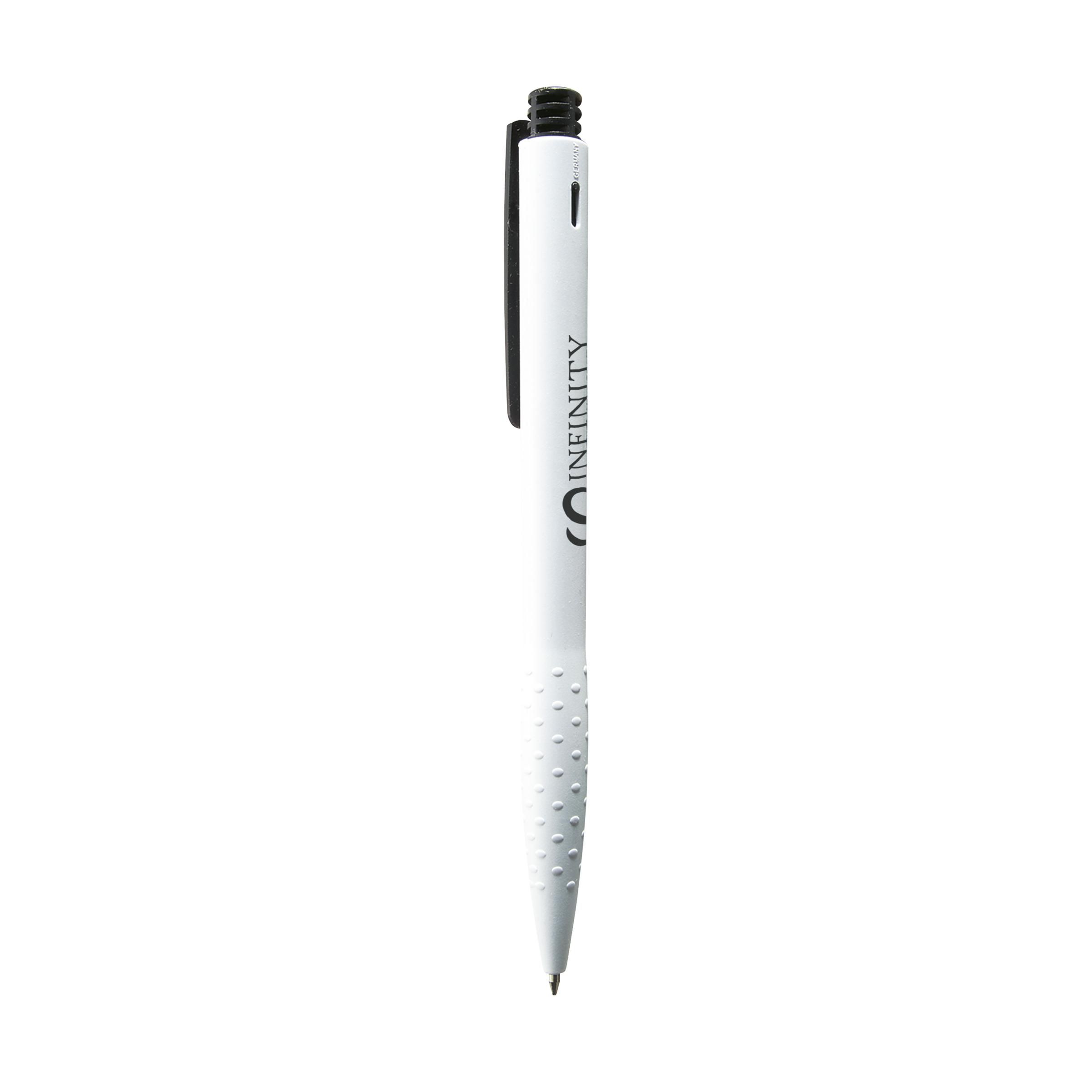 Blauwschrijvende óf zwartschrijvende balpen met gripvast voorstuk, gekleurde clip en drukknop. Geef bij je bestelling a.u.b. jouw voorkeur aan.