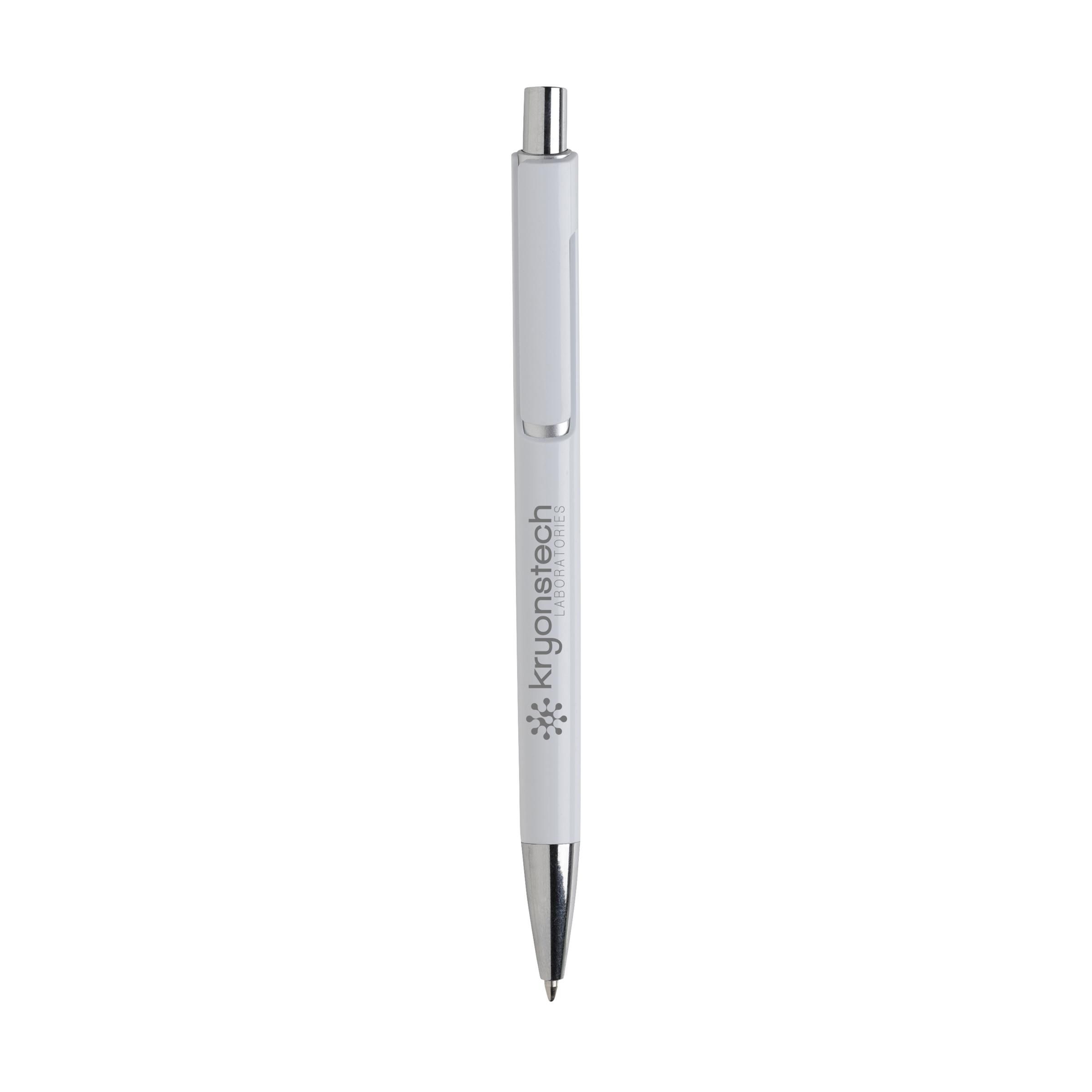 Blauwschrijvende balpen met uniek design: de body en clip van deze balpen zijn uit één geheel vormgegeven en dat maakt deze pen tot een bijzondere eyecatcher. Met opvallend zilverkleurig accent onder de optisch 'zwevende' clip.